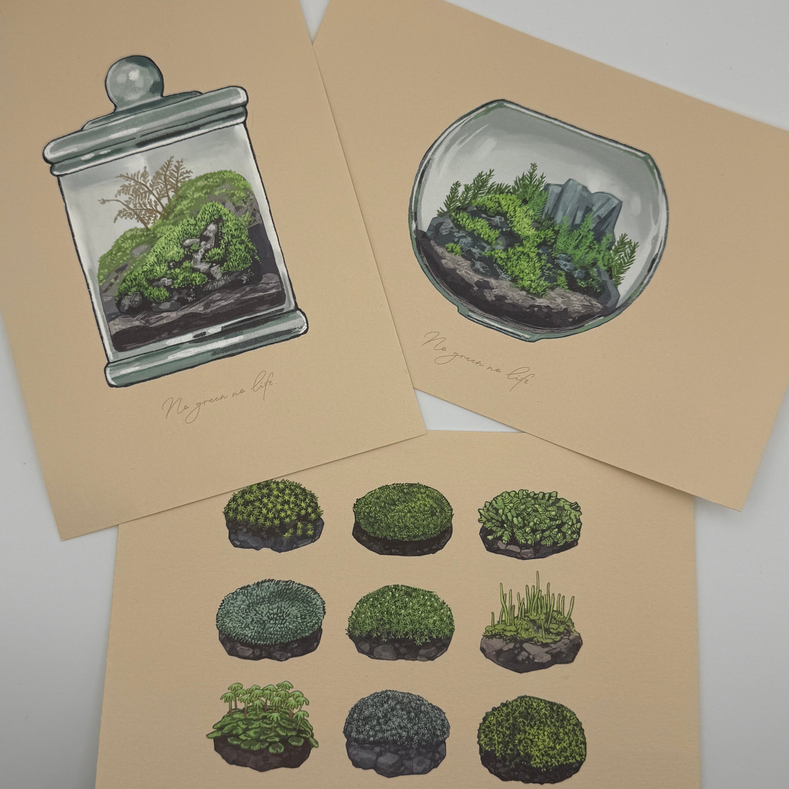 こけもっちさんのお人柄を表したような優しく丁寧な苔のイラストに心癒されること間違いなし。