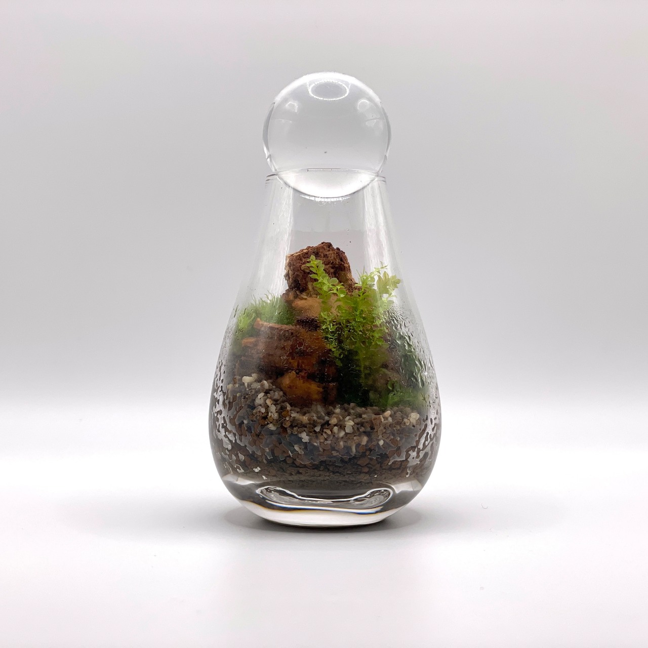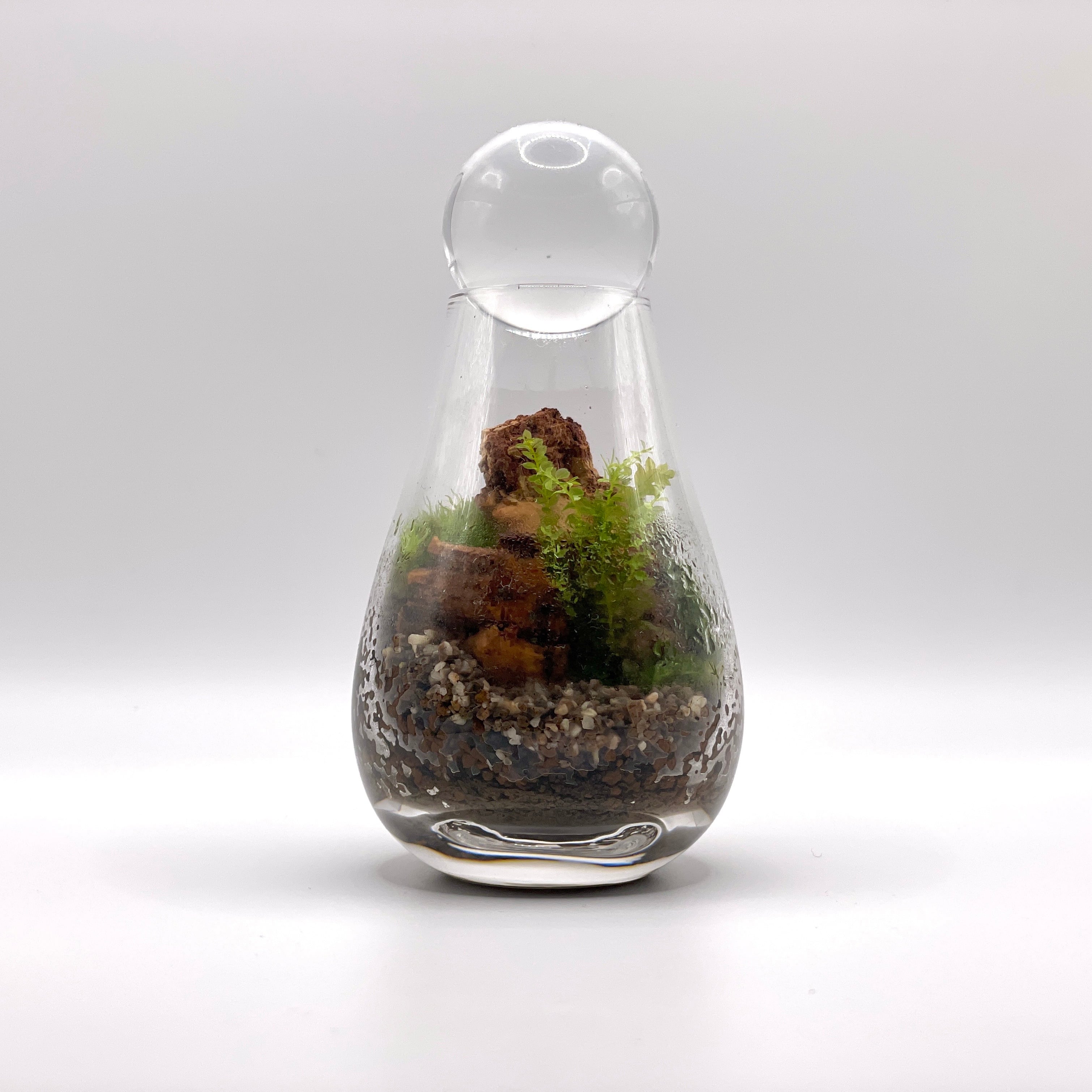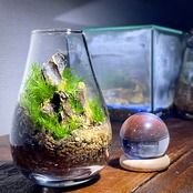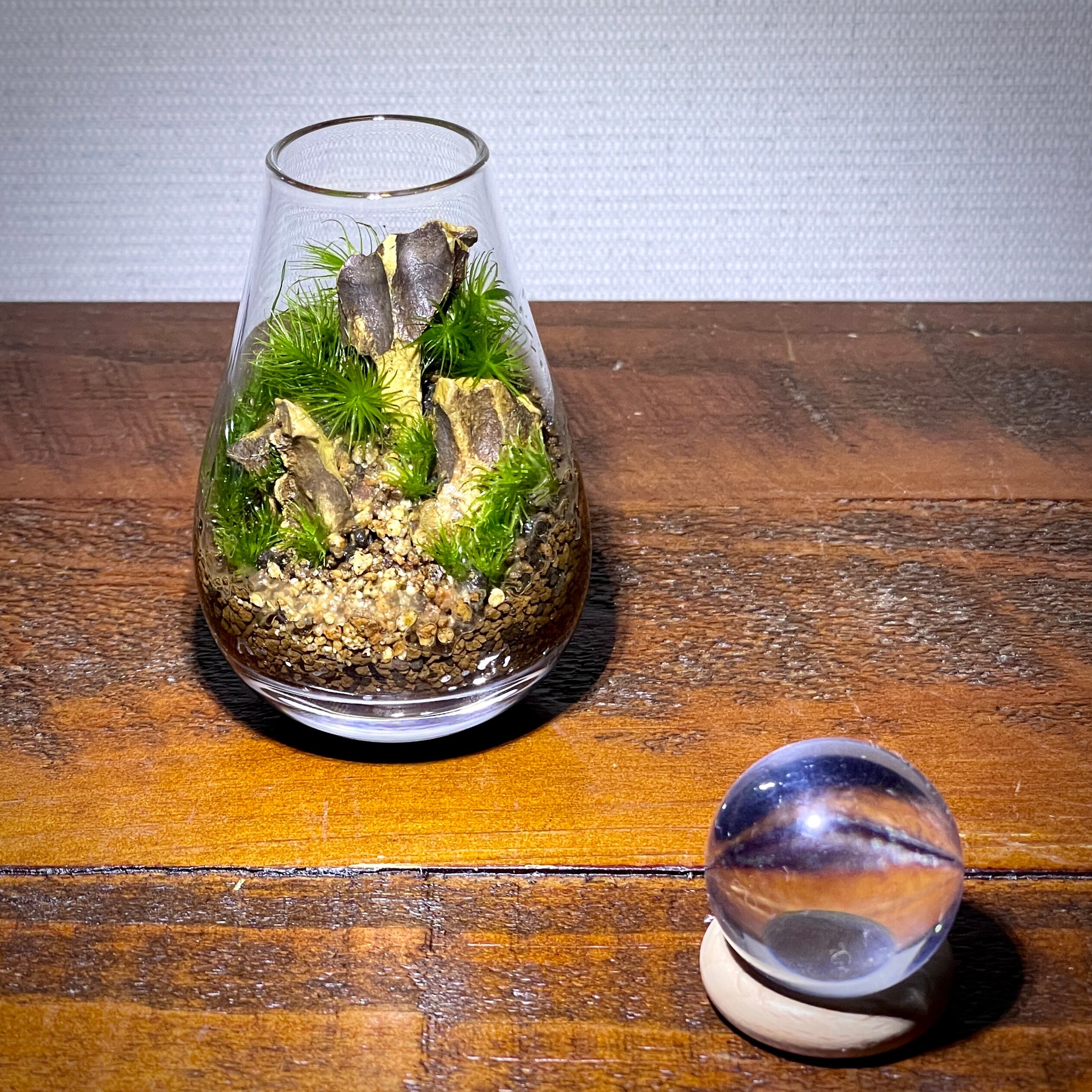まるで月の明かりに照らされた小さな世界のような苔テラリウムを表現することができます。
